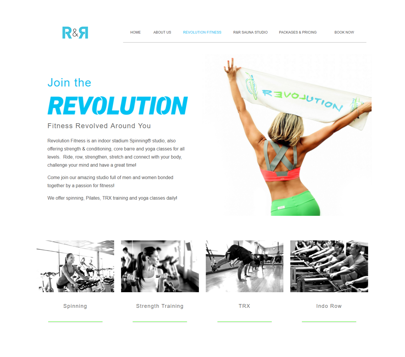 Revolution Fitness was an indoor stadium spinning studio that also offered, strength training, rowing, Pilates, and y