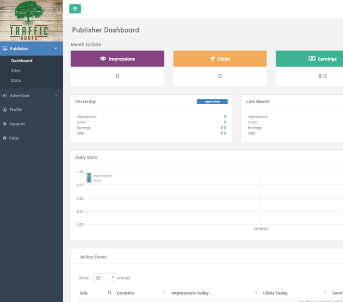 Part of a three person internship team that worked together in creating the front-end of Trafficroots' Publisher / Ad